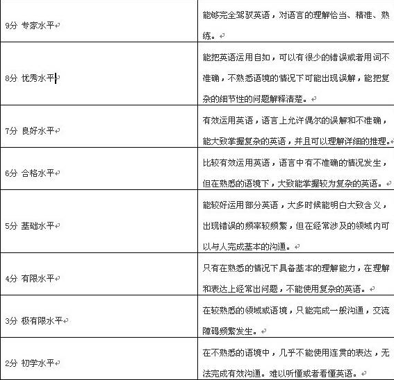 雅思9分:成績(jì)相當不錯,能十分自如的使用英語(yǔ),流利并能完全讓人理解。