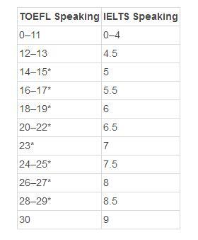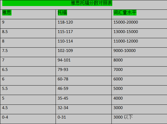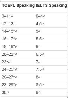 托福寫(xiě)作和雅思寫(xiě)作分數對照表
