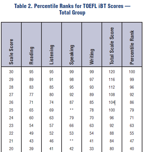 其看全球托福寶寶的整體分數百分等級,我們可以知道: