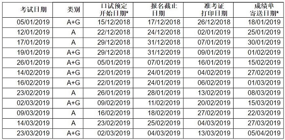2019年1月至3月用于英國簽證及移民的雅思考試